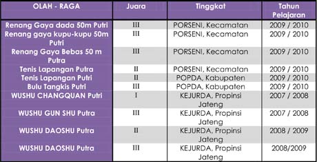 Prestasi Olah raga yang di raih oleh SD Kartini Blora Sampai Tahun 2010 |